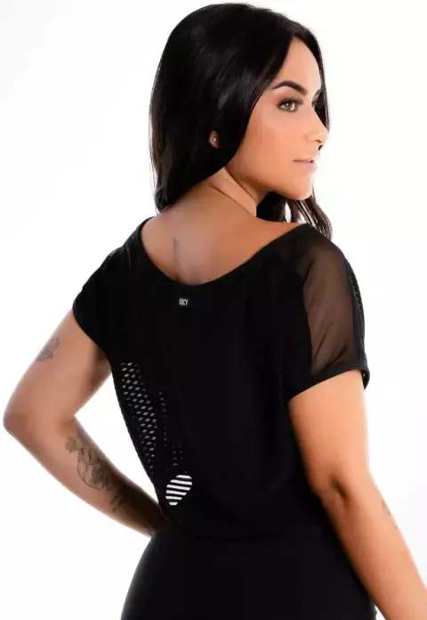 Tecido firme com bom toque, elástico e sem transparência. Não forma bolinhas nem desbota. Modelagem ampla e anatômica, que se ajusta facilmente ao corpo. Produto de excelente qualidade.