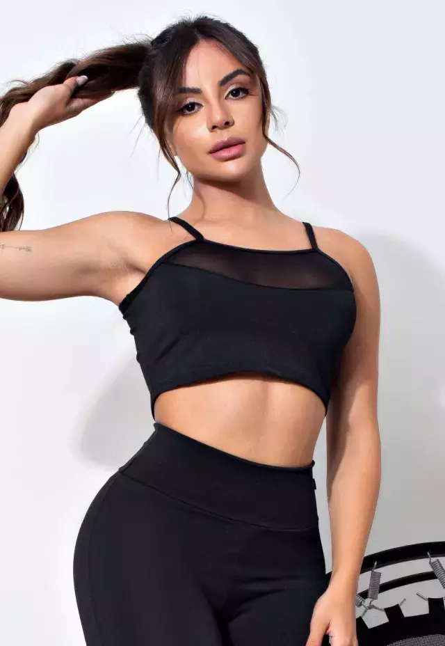 O tecido possui bastante elastano o que gera uma ótima elasticidade a peça.
